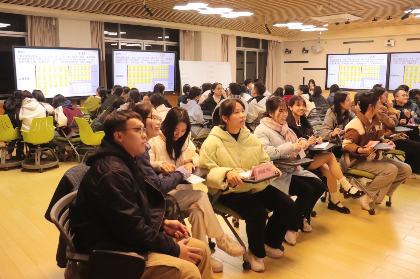 本次竞赛采取团体形式进行,分为三个环节:“集思广益”阅片环节、“争先恐后”对擂抢答环节、“激流勇进”风险答题环节。赛场上,各团队成员团结一致,充分利用自己的专业知识,冷静分析题目,快速判断正确答案,团队比分交替上升。最后,“梦之队”荣获一等奖,“感觉就很队”及“好柿花生队”荣获二等奖,“四人组队”“强强联手队”及“一定都队”荣获三等奖。