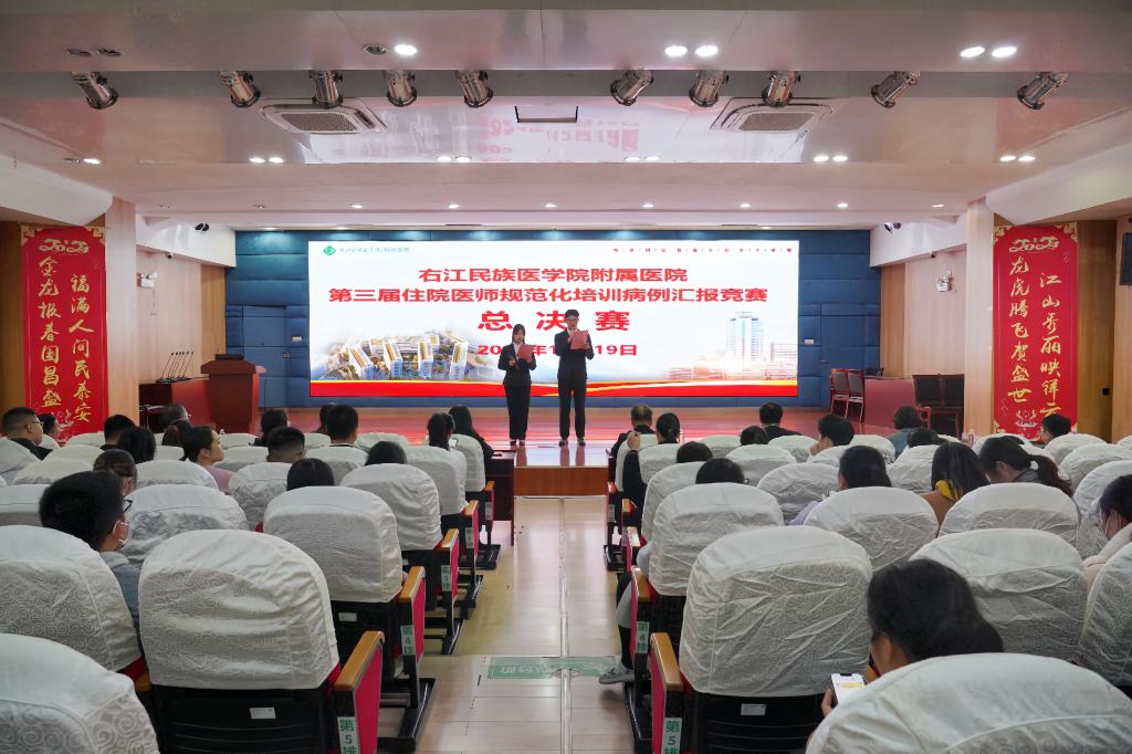 总决赛现场气氛热烈,各参赛选手通过精美的PPT、平行叙事的方式,生动汇报了他们在临床实践中遇到的典型病例,展示他们在临床实践中对疾病诊治的独到见解、对医患关系的细腻处理以及对医学职业精神的深刻感悟,他们对病例的提炼、总结与归纳以及他们严谨的临床思维,良好的言语表达能力等,充分展现了右医附院住培医师的风采及学习成效。