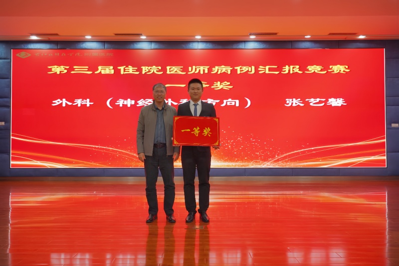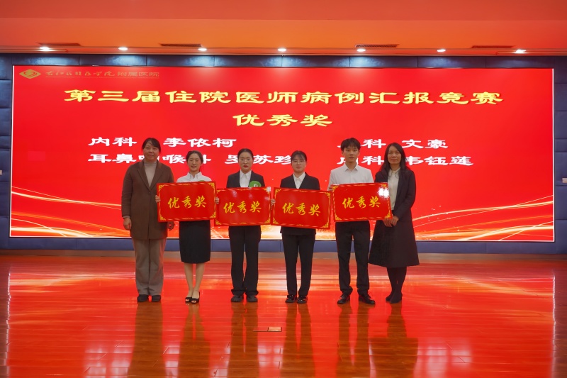 经过紧张激烈的角逐,最终来自外科(神经外科方向)专业的住培医师张艺馨凭借优秀的案例、严谨的临床思维和生动的讲解荣获大赛一等奖;儿科专业住培医师王桂闽、内科专业住培医师徐康宁等2人荣获比赛二等奖;放射科专业住培医师谷庆禹、外科(胸心外科方向)专业住培医师孙光荣、超声医学科专业住培医师卢焦等3人荣获三等奖,比赛还评选出了优秀奖若干名。右医附院副院长潘征、黄华东、汪建初及评委专家共同为获奖选手颁奖。