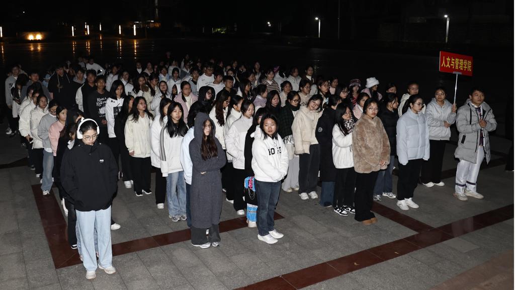 1月1日早晨,人文与管理学院学生代表在知新广场集合,准备开始晨跑。