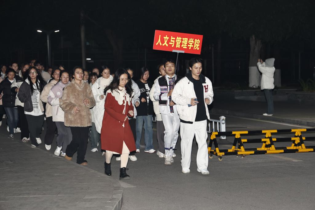 学生科辅导员带领同学们齐心勃发前行。虽然天还未亮,但大家心中燃烧的激情与对新年的期盼却驱散了天色的暗淡。同学们怀揣着对未来的期待和对健康的追求,共同迈向终点。