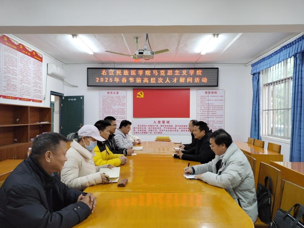 在新春佳节即将到来之际,为表达对学院高层次人才的关心关爱,2025年1月10日,马克思主义学院党委召开2025年春节前高层次人才慰问座谈会。座谈会由学院党委书记、院长许世华主持。