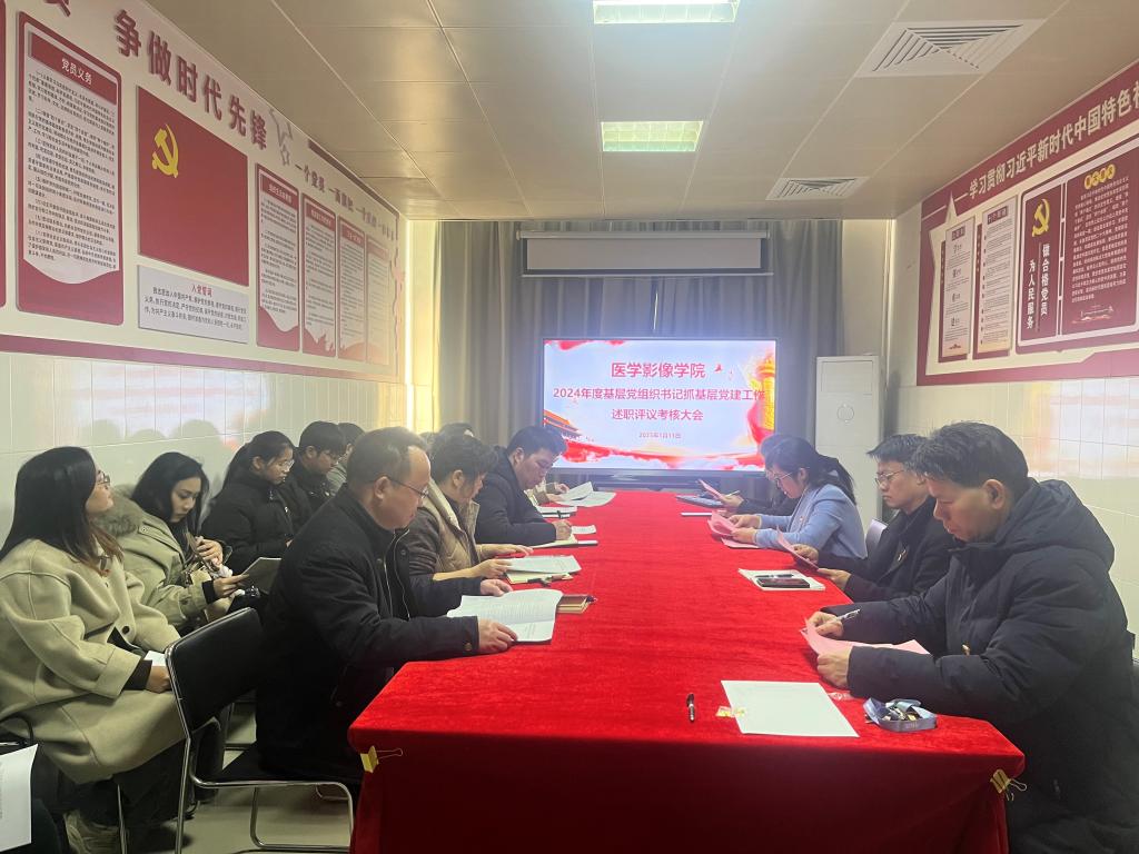 1月13日下午,医学影像学院党委在百城校区6-607党员活动室召开2024年度党支部书记抓党建述职评议考核会,听取各党支部书记抓党建工作履职情况,总结经验做法,查找问题不足,明确任务举措,着力提升学院基层党建工作质效。学院党委书记李丹同志主持会议,学院领导班子、全体党支部书记、部分党员师生代表参加会议。
