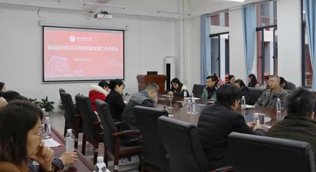 为深入贯彻全国教育大会精神,积极响应《教育强国建设规划纲要(2024—2035年)》的部署要求,推动学院高质量内涵式发展,基础医学院于2月21日上午在百东校区召开高质量发展工作务虚会。学院领导班子成员、各党支部书记、科室负责人和全体行政管理人员参会。