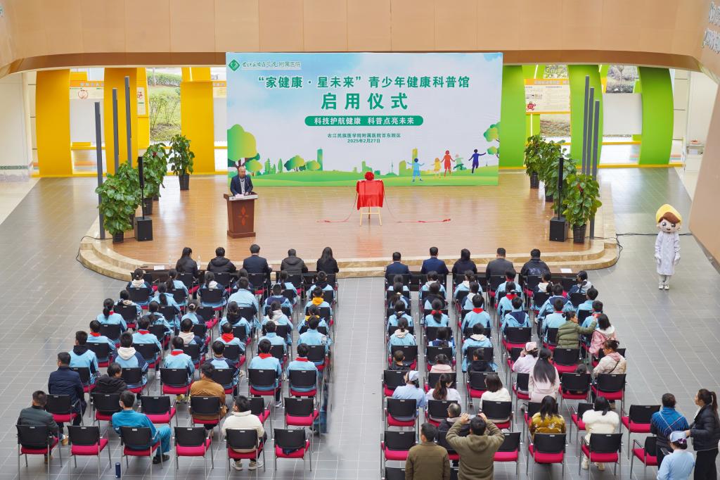 黄照河代表医院党政领导班子在启用仪式上致辞指出,“家健康•星未来”青少年健康科普馆是广西区内首家集系统化、专业化、智慧化、公益化于一体,以器官系统为基础的青少年健康科普基地,科普馆配备了人体各系统器官模型、仿真模拟训练模型,以及VR游戏互动装置等。黄照河诚挚邀请广大专家学者、学校老师、家长以及青少年朋友们前来右医附院“家健康·星未来”青少年健康科普馆参观研学。黄照河指出,右医附院将继续加大投入,秉承“根植老区为人民 医者患者一家人”的办院宗旨,以特色“家文化”为载体,不断完善健康科普设施和内容,提升科普教育的质量和效果,探索健康科普与医疗服务相结合的新模式,为青少年提供更加全面、优质的健康服务。