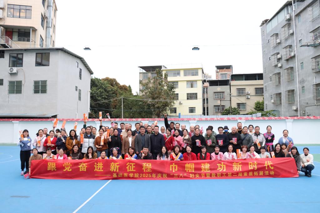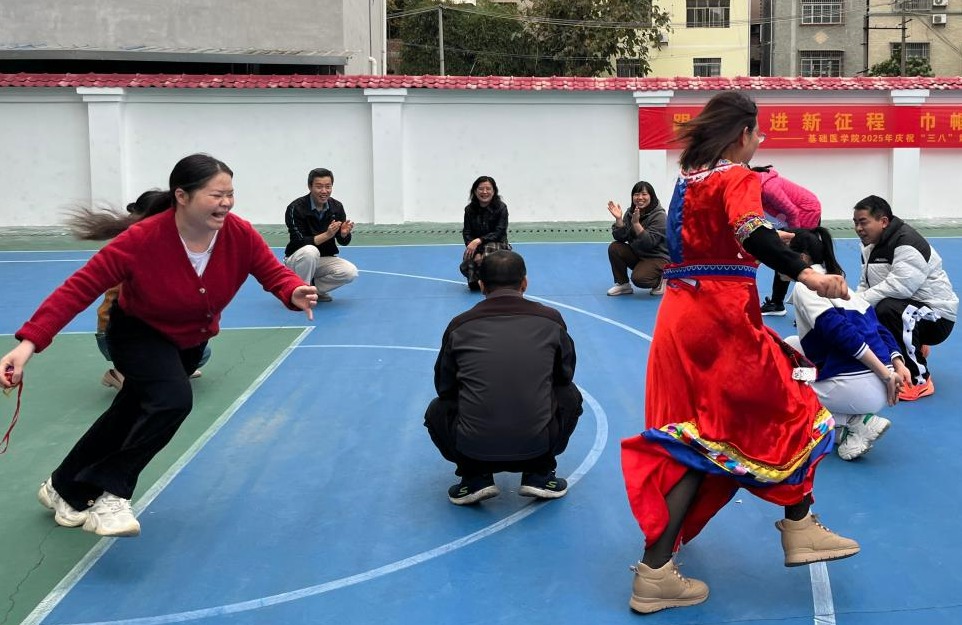 为庆祝第115个“三八”国际劳动妇女节,进一步加强教职工思想政治引领,丰富教职工的业余生活,增强团队凝聚力和协作精神,3月19日下午,基础医学院在逻索社区球场举办了庆祝“三八”国际劳动妇女节暨教职工第二期素质拓展活动。学院全体教职工积极参与,活动现场气氛热烈,欢声笑语不断。