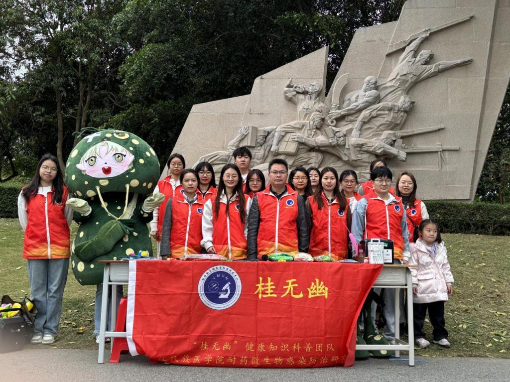 上巳节里春意浓,桃花盛开映日红。3月29日,YABO鸭脖官网耐药微生物感染防治研究中心黄衍强教授带领桂无幽科普团队在半岛公园开展幽门螺杆菌感染防治知识科普活动。
