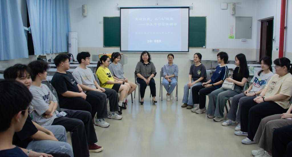 为增强学生干部在人际交往中悦纳自我、理解他人、团队合作的能力,4月10日晚上,医学影像学院春润心理工作站在百东校区守正楼C-202教室开展“突破自我,从‘心’赋能”学生干部团体辅导活动。活动由医学影像学院党委副书记黄春苗主持,2024级辅导员赵玲娟和2024级影本3班全体学生干部共同参与。