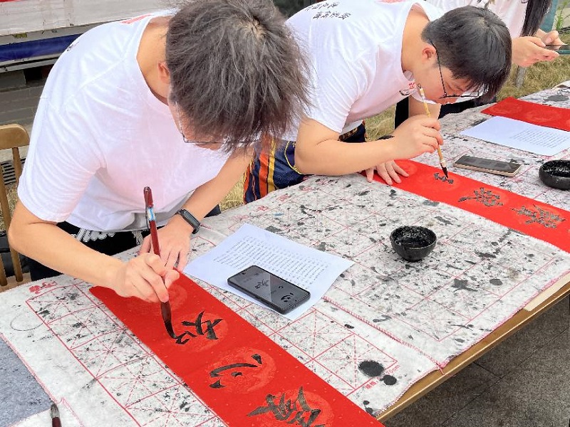 活动还设置了互动创作环节。参与活动的师生纷纷即兴挥毫,“读书万卷始通神,学海泛舟探妙音”,遒劲有力的字迹不仅是艺术的呈现,更传递着对阅读的礼赞。