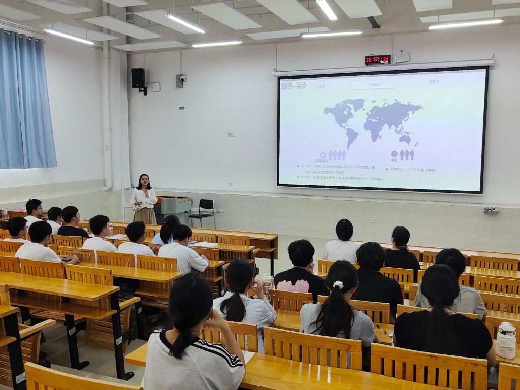浙江我武生物科技股份有限公司代表袁佳莹通过一段精彩的视频,生动展现了公司的整体风貌,让同学们对我武生物有了一个初步而直观的印象。袁经理详细介绍了公司及公司产品,并展望了广阔的市场前景,让同学们看到了公司的无限潜力和发展机遇。