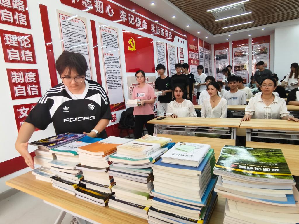 在图书捐赠环节,同学们热情高涨,手持精心挑选的各类书籍,有序排队捐赠。捐赠的书籍涵盖医学、文学、科普、历史等多个领域,这些知识的火种经整理后将纳入学校图书馆资源库,丰富了学校图书馆馆藏资源,优化了藏书结构,实现资源的二次利用。