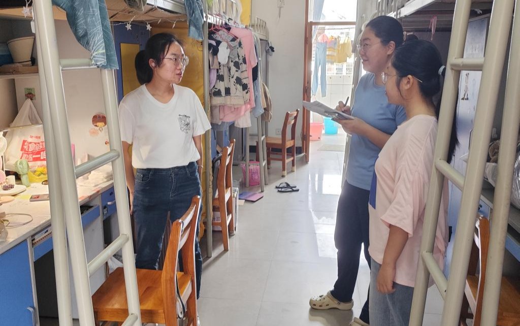检查组逐间走访宿舍,重点检查用电安全、消防安全、财物安全及卫生状况。在检查过程中,各小组老师反复叮嘱研究生:“假期离校前务必要断电关窗、保管好贵重物品;留校需守规,注意用电用火安全,且人人都要注意交通安全、提高防诈意识。”从本次检查情况来看,研究生宿舍安全卫生状况整体良好。大部分研究生能够自觉遵守宿舍安全管理规定,积极保持宿舍环境整洁,展现出较高的安全意识和良好的生活习惯。
