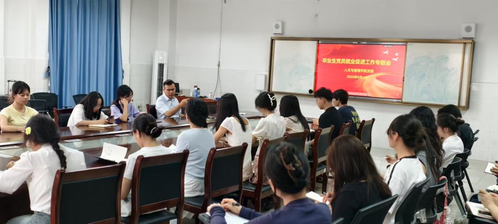 6月13日,人文与管理学院召开2025届毕业生党员就业促进和指导专题会。学院党委书记、院长李常应和毕业班辅导员及全体毕业生党员参加专题会。