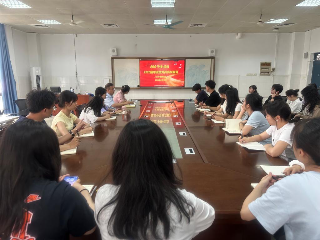 6月13日,人文与管理学院党委开展“忠诚 干净 担当”主题毕业生党员离校教育活动。学院党委书记、院长李常应,专职组织员、学生科副科长韦艳春及全体毕业生党员参加活动。