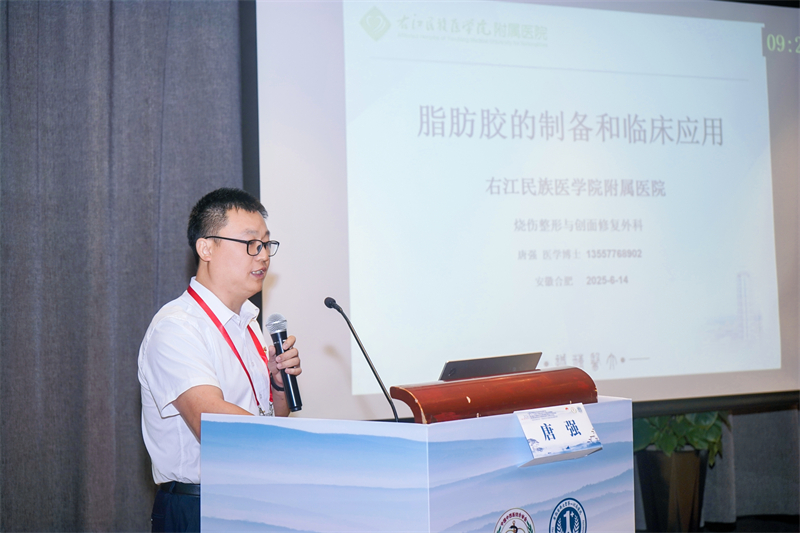 临床医学院(附属医院)烧伤整形与创面修复外科副主任唐强博士在会上作《脂肪胶的制备和临床应用》学术报告