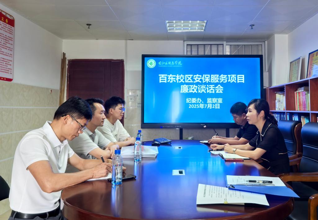 7月2日,百东校区1、2期安保服务中标方广西百色市保安服务有限责任公司正式与鸭脖签订服务合同。在签订服务合同的同时,在7栋11楼学校纪委会议室,学校纪委召集中标方代表、学校保卫处领导开展廉政谈话,并签订廉洁承诺书,督促项目方与学校职能部门强化纪法观念,时刻紧绷廉洁自律之弦。