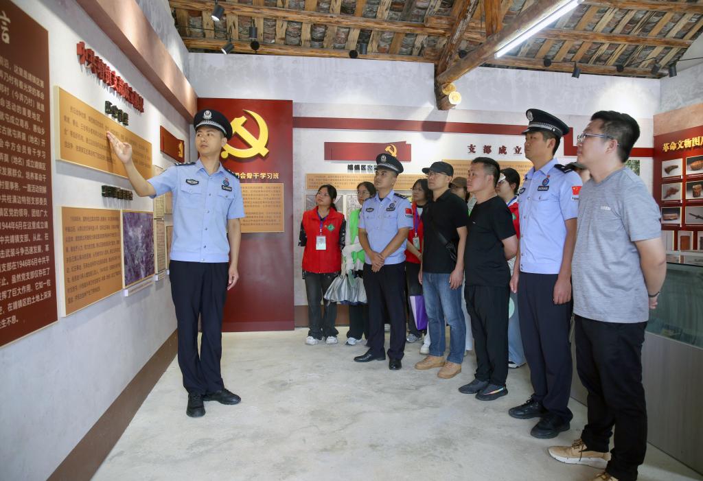 服务团队员们与民警一同参观了中共靖镇支部旧址,了解了支部成立背景和戍边英雄故事。在庄严的党旗下,他们共同宣读入党誓词,誓言铿锵有力,回荡在边境的上空。