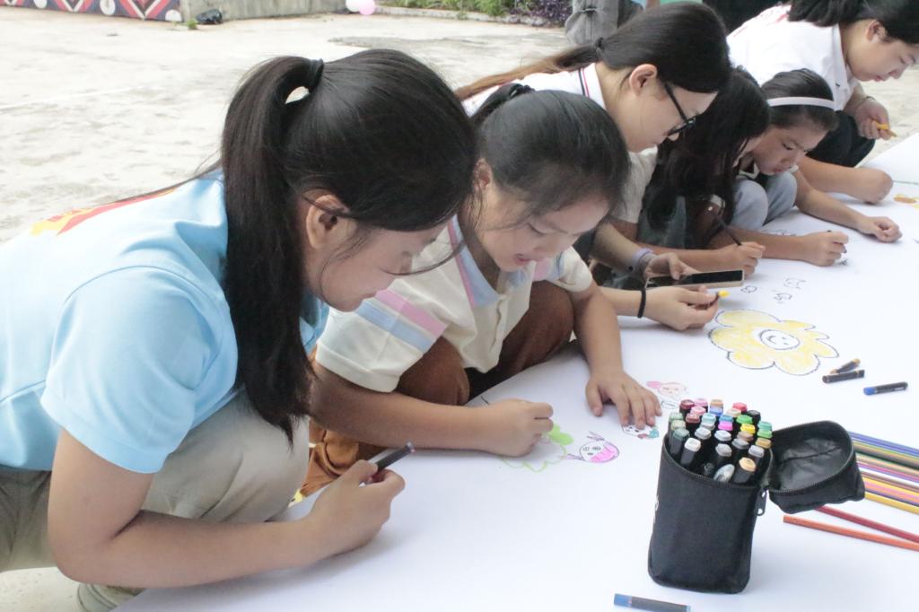 党建引领聚合力,青春筑梦助振兴。实践团以党建为引领,联合者么村党支部开展"党群连心"主题党日活动。在驻村第一书记黄坤老师的带领下,护理学院党委书记黄上峰老师、党委副书记邱勇强老师以及学生党员代表深入老党员家中,细致探寻“党建 + 产业”融合发展模式的实践硕果。与此同时,部分队员与村民齐心协力,共同绘制民族团结主题画卷,巧妙融入党旗、壮锦、瑶绣等民族元素,生动展现出“中华民族一家亲”的温馨画卷,进一步筑牢了青年学子服务基层的信念根基,更以党建与民族文化的深度交融,为乡村振兴注入源源不断的创新活力。