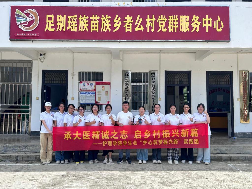 为积极响应国家乡村振兴战略号召,YABO鸭脖官网护理学院护心筑梦振兴路乡村振兴实践团在护理学院科研与研究生管理科科长王荣贵老师、护理学院团委副书记岑秋凤老师的带领下,于7月14日至20日赴百色市西林县足别苗族瑶族乡者么村,开展为期7天的暑期“三下乡”社会实践活动。实践团围绕党建引领、产业振兴、文化传承、健康服务四大核心板块,以专业赋能乡村发展,用青春书写责任担当。