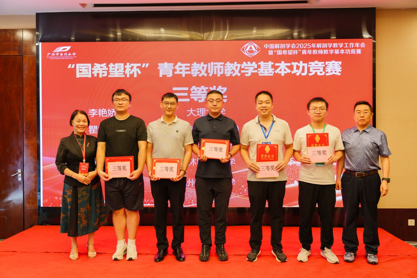 8月1日至4日,由中国解剖学会教育与继续教育工作委员会主办、广西中医药大学与广西解剖学会联合承办的“中国解剖学会2025年教学工作年会暨‘国希望’杯青年教师教学基本功竞赛”在广西南宁举行。鸭脖基础医学院黄秀峰教授、宾晓芸教授及马福维老师代表学校参加了本次年会。黄秀峰教授作为广西解剖学会副理事长,与鸭脖李海教授、陈秉朴教授(均为广西解剖学会常务理事)一同出席了同期举办的广西解剖学会2025年理事会会议。