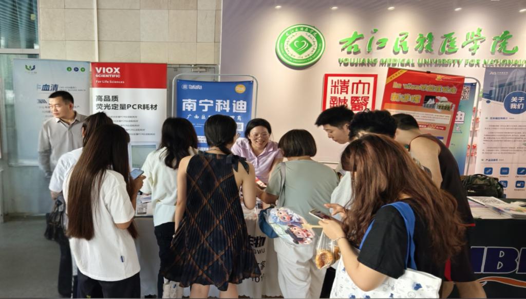 此次活动聚焦实验室设备、试剂耗材、技术交流及科研服务四大板块,集中展示了生物试剂领域的前沿产品与技术,为师生搭建了与行业优质企业直接对话的平台。深圳市仟海科技有限公司、北京博奥森生物技术有限公司、南宁科迪生物技术有限公司、北京维通利华实验动物技术有限公司等9家企业参展,提供了涵盖仪器设备、抗体蛋白、实验耗材及动物模型等多样化产品。其中,仟海科技有限公司的先进仪器为实验基础保障提供支持,博奥森生物技术有限公司的抗体产品助力生物医学研究,科迪生物技术有限公司的试剂耗材满足多场景需求,维通利华实验动物技术有限公司的动物模型则为相关领域研究奠定基础。