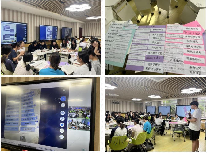 课堂活动采用“课前线上自学+课中科研设计类型分类游戏+汇报答疑”的趣味化教学流程。课前两校学生共享线上资源备课;课中由海南医科大学护理学院夏杰琼教授与YABO鸭脖官网护理学院吕辉教授共同主导,设置两个特色游戏环节:第一轮为科研设计类型分类游戏,各小组学生按照科研设计类型分类后制成图表上传,老师通过雨课堂随机抽取了小组进行汇报,其他组补充;第二轮为科研设计应用游戏,学生为研究问题匹配合适的研究设计并制成图表上传,老师通过雨课堂随机抽取小组进行汇报,其他组分享不同观点。