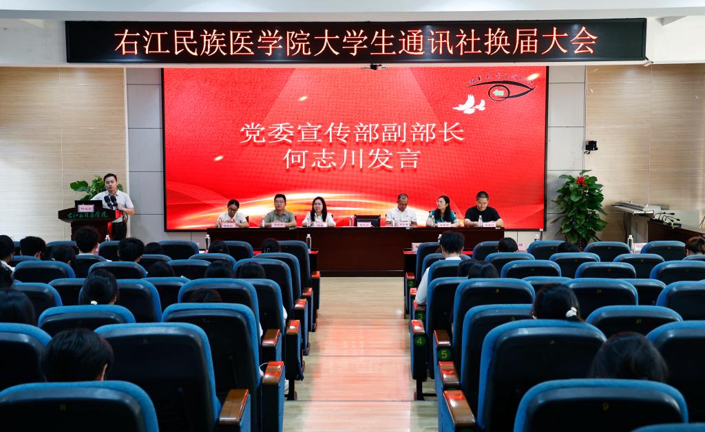 10月18日下午,YABO鸭脖官网大学生通讯社(以下简称“大通社”)第二十三届换届大会暨表彰大会在百城校区举行。大会全面总结过去一年的工作成果,表彰表现突出的优秀工作者。党委宣传部、党委组织部教师代表,全体大通社成员,各校级组织、学生社团、二级学院记者团代表参加大会。