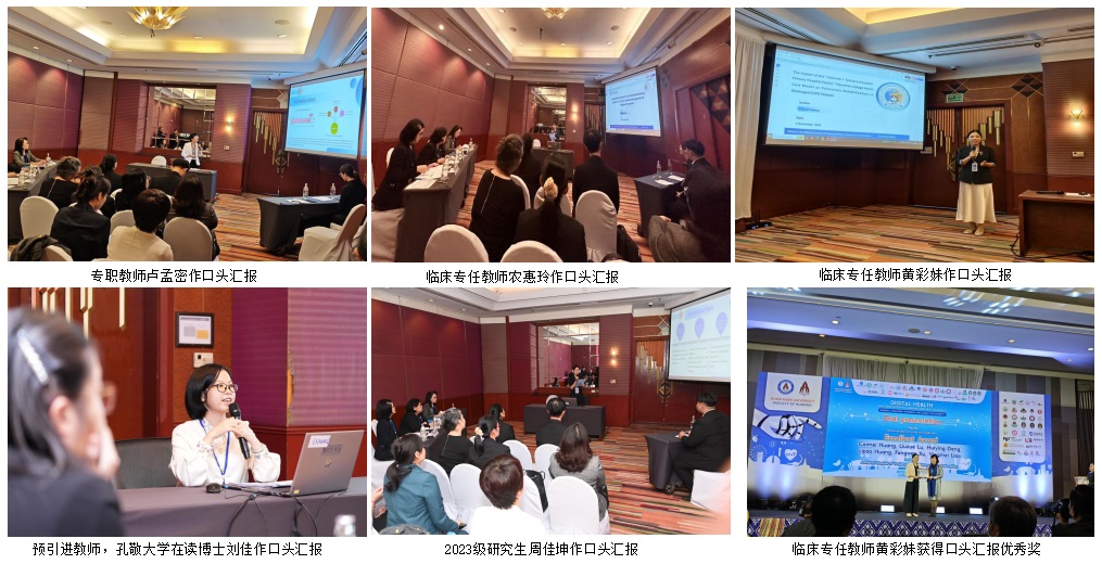 护理学院卢孟密、黄彩妹、农惠玲等教师及2023级研究生周佳坤参加本次会议并作口头汇报。临床专任教师黄彩妹的口头汇报获得优秀口头汇报奖。临床专任教师农惠玲副主任护师担任大会壁报汇报的评审专家。