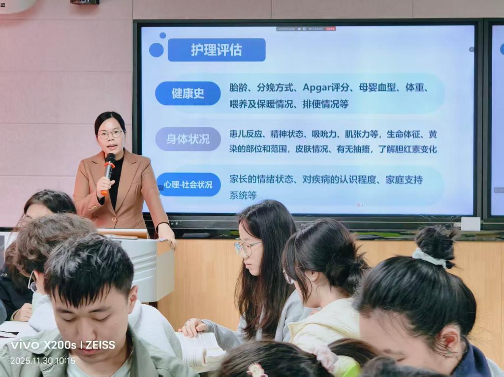 为深入推进虚拟教研室共建共享、促进区域高校护理专业课程教学协同发展,2025年11月30日上午,鸭脖护理学院与赣南医科大学护理学院、广东药科大学护理学院通过智慧教室共同开展了《儿科护理学》课程“同上一堂课”教学活动。本次授课主题为“新生儿溶血病”,授课班级为2023级护理学本科3班,由妇儿护理学教研室黄芝蓉老师负责核心内容讲授并组织学生参与示范教学。