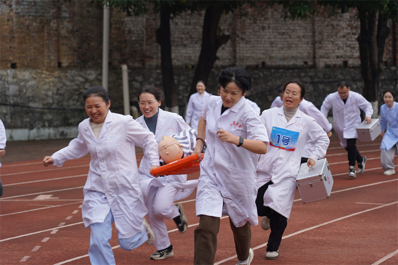 这场以“团结、拼搏、创新”为主题的体育盛会,不仅展现了全院职工“白衣执甲”之外的活力风采,更成为凝聚团队力量、弘扬医者精神的重要载体。赛场上,从气排球精准扣杀的默契配合,到“竞速毛毛虫”中飞驰的身影;从拔河比赛震天动地的呐喊,到“急救先锋接力”中专业素养与体育精神的完美融合,每一项活动都凝聚着右医附院人对健康生活的热爱与追求。这些精彩瞬间,既是对全院职工精神风貌的集中检阅,也是医院深化“家”文化建设、推动高质量发展的生动实践。