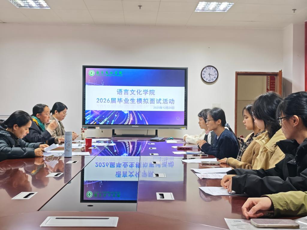 12月24日,语言文化学院举办“党建引领促就业,实战演练强能力”简历诊断暨求职模拟面试活动。活动采取“党建引领+实战演练”模式,旨在提升2026届毕业生就业竞争力,引导学生树立正确就业观。学院党委书记卢荣妹、副书记谭会恒参加活动,通过“一对一实景模拟+现场点评”,为毕业生诊断问题、补齐短板。
