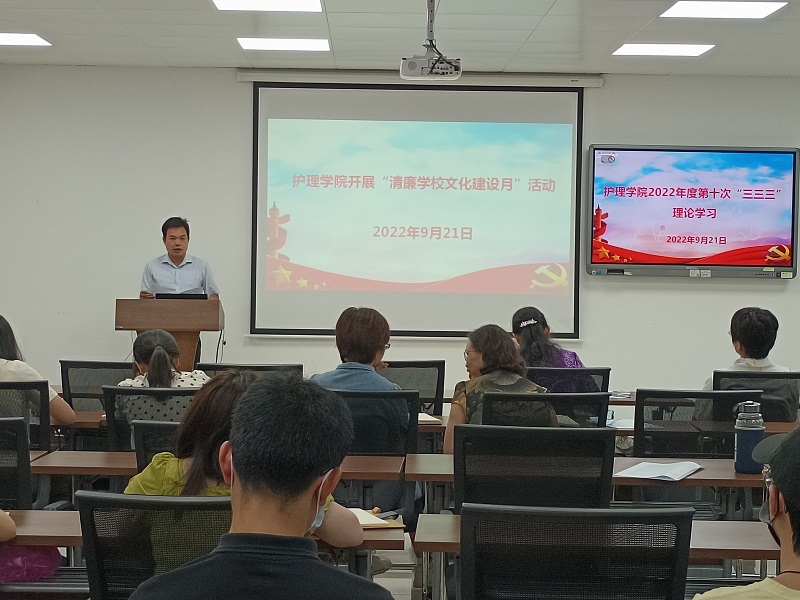 根据清廉学校建设的总体部署和规划,为进一步推动清廉学校建设进程,不断增强护理学院师生廉洁从业意识和拒腐防变能力,持续推动护理学院党风廉政建设,9月21日下午,护理学院在二楼会议室开展“清廉学校文化建设月”活动,黄上峰副书记主持活动,护理学院全体教职工参加本次活动。