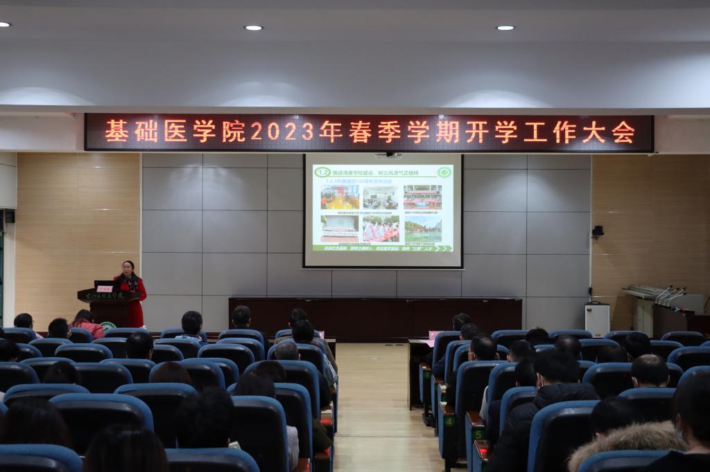2023年2月17日,基础医学院于5栋101会议室召开2023年春季学期开学工作大会,基础医学院领导班子及全体教职员工参加了会议,会议由基础医学院副院长王金花教授主持。