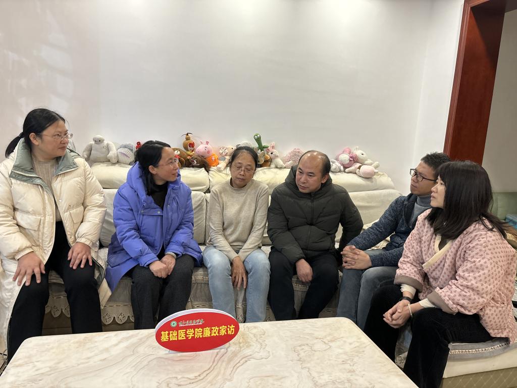 为深入贯彻落实习近平总书记关于注重家风家训的重要指示精神,引导广大教职工崇廉洁、正家风的浓厚家庭氛围,12月18日晚上,基础医学院党委书记宾晓芸一行到学院病原生物学与免疫学教研室黄干荣老师家开展廉政家访活动。
