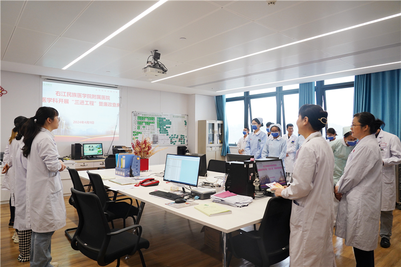 为进一步加强医院党风廉政建设,推动廉政查房进科室,监督关口往前移,增强医务人员廉洁从业意识,2024年4月9日上午,右医附院梁楚晗纪委书记率队到康复医学科开展“三进工程”、廉政查房活动。右医附院康复医学科全体医护人员参加廉洁查房,右医附院监察室刘芳印主任主持查房活动。