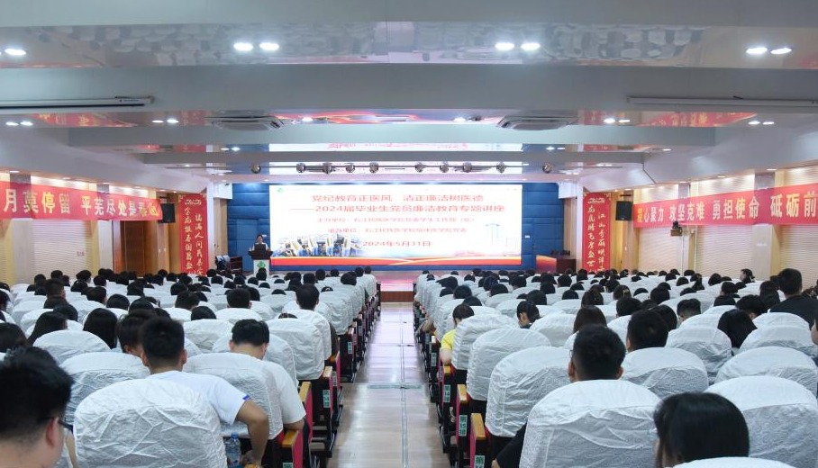 5月31日,鸭脖举办“党纪教育正医风,清正廉洁树医德”毕业生党员廉洁教育专题讲座。