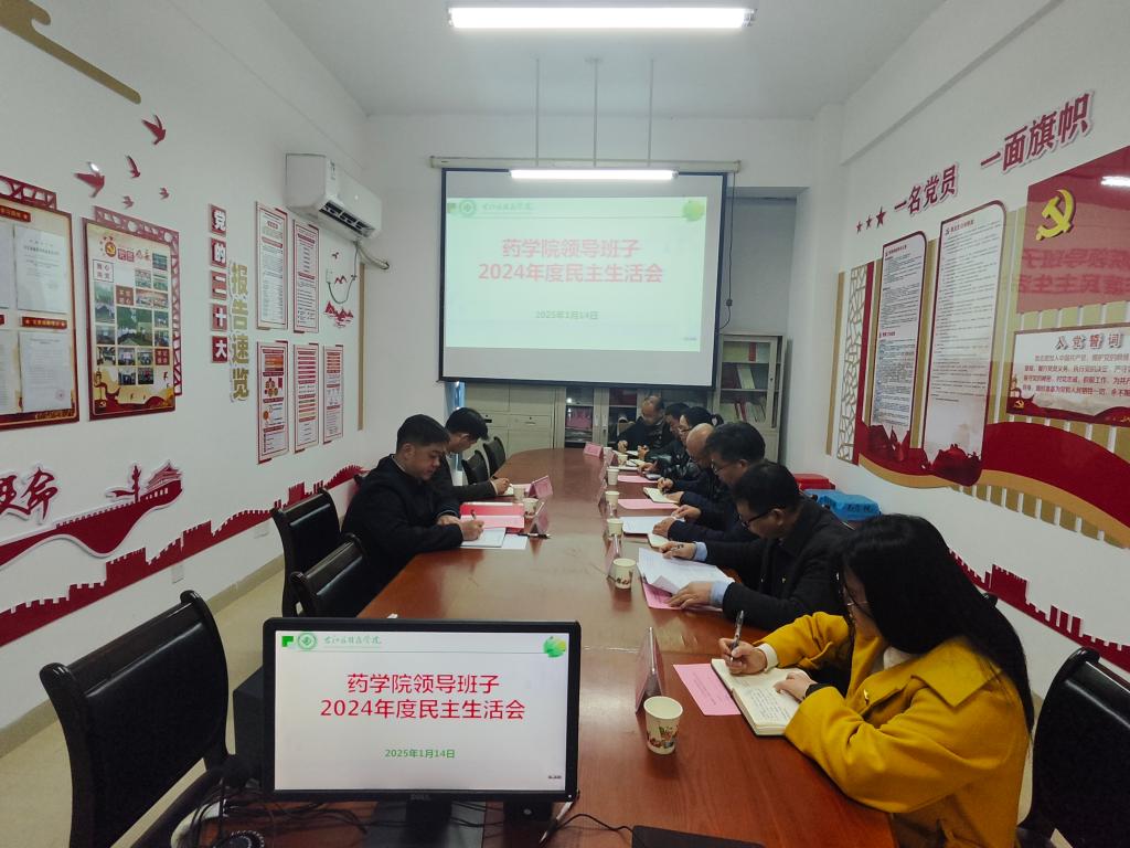 为深入学习贯彻习近平新时代中国特色社会主义思想,巩固深化党纪学习教育成果,综合发挥党的纪律教育约束、保障激励作用。1月14日上午,药学院党委在知行楼E-204室召开领导班子2024年度民主生活会,学校党委副书记、校长黄龙坚,院长办公室副主任(主持全面工作)廖天保到会指导,药学院领导班子成员参加会议,学院党政办主任、党委组织员、党支部书记列席会议,民主生活会由陈秉朴书记主持。