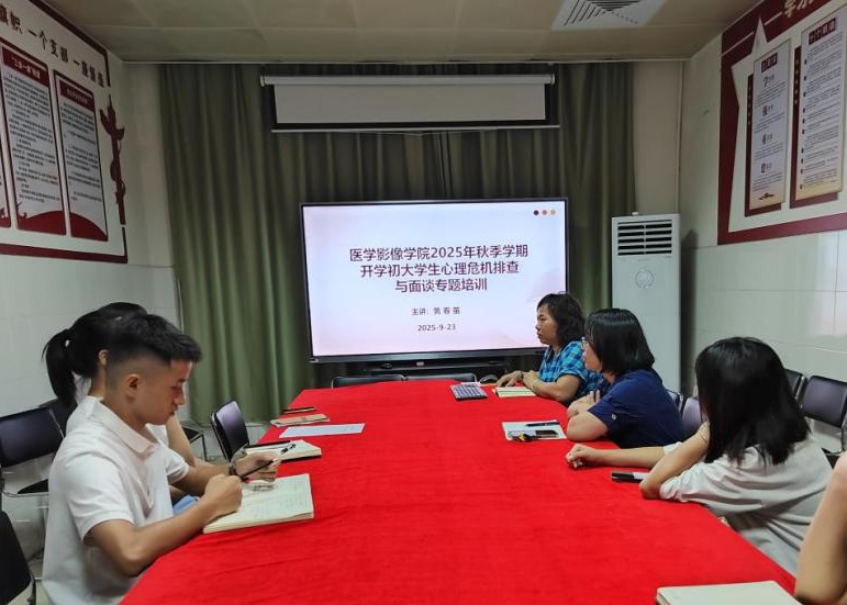 为强化学生心理健康教育工作,提升班主任与学生、家长沟通效能,2025年9月23日,医学影像学院“春润”工作站召开心理面谈专题培训会,会议由学院党委副书记黄春苗主讲,辅导员及新生班主任参加。