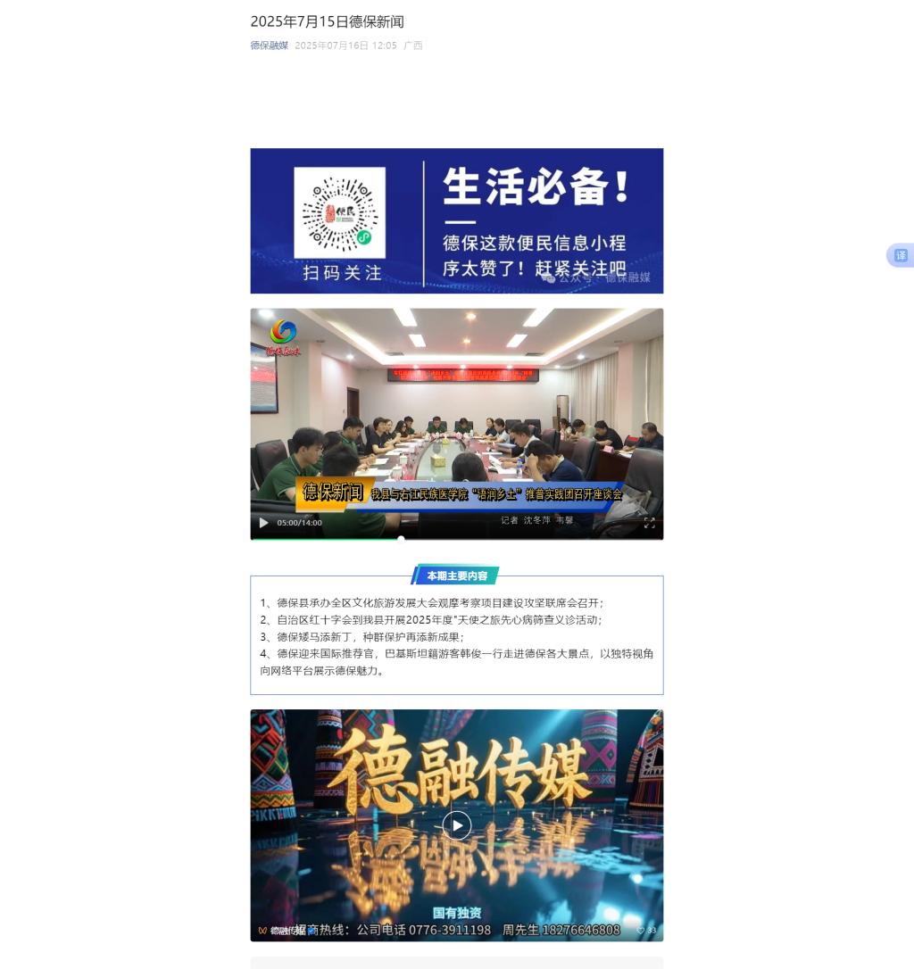 7月15日,德保融媒以视频形式报道了YABO鸭脖官网“语润乡土”推普实践团到德保县开展2025年推普助力乡村振兴全国大学生暑期社会实践志愿服务活动。
