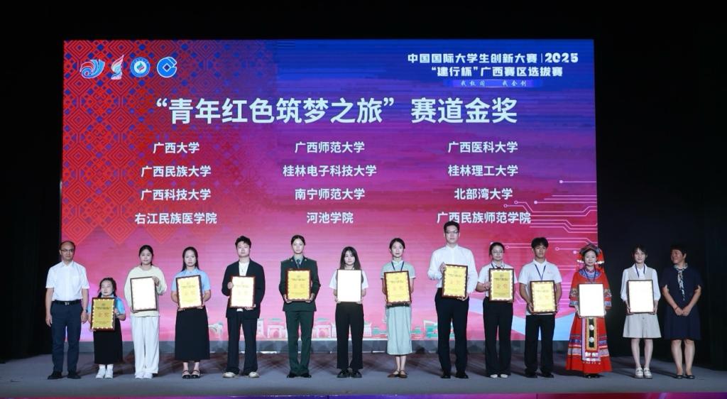 7月18日,中国国际大学生创新大赛(2025)“建行杯”广西赛区选拔赛总决赛在广西民族大学落下帷幕。经过激烈角逐,鸭脖10个项目获得金奖,其中高教主赛道本科生创意组金奖4项、创业组金奖1项,研究生创意组金奖4项,“青年红色筑梦之旅”赛道创意组金奖1项。创鸭脖单届比赛获金奖项目数量之最。