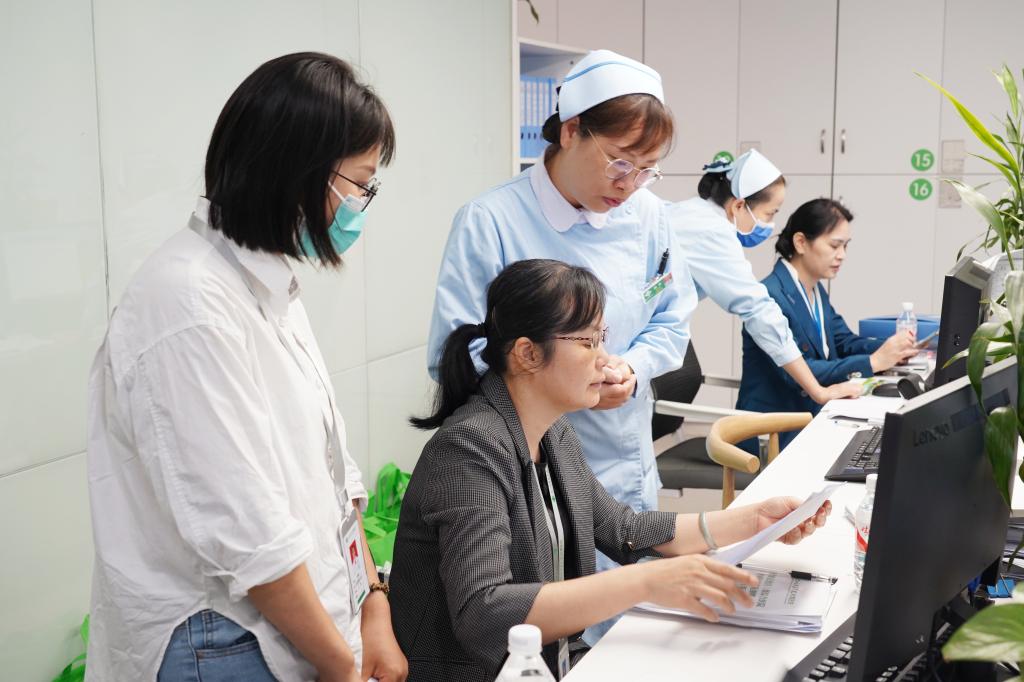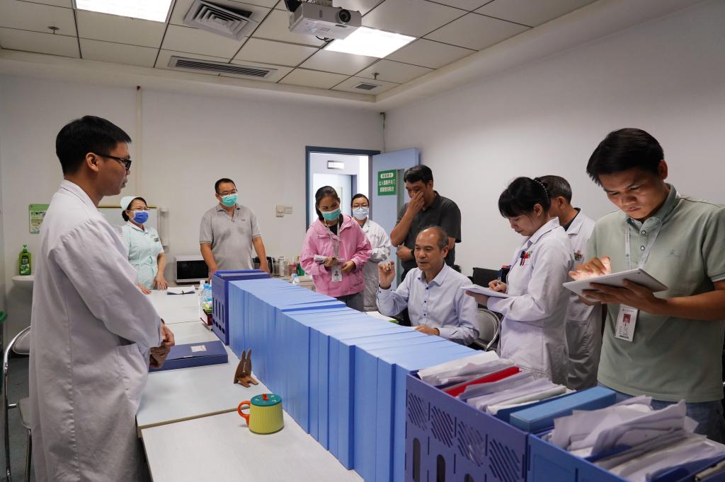 为进一步从实从细推进三级综合医院评审工作的落实,实时掌握医院评审工作进度和成效,根据医院评审复审工作安排,2023年10月30日—11月3日,我院组织开展三级综合医院评审第一次全面集中督导检查,院领导林栩、杨发奋、陈文成、潘征、梁楚晗、蓝常贡、邓益斌、覃灵艳分别带领8个督导组,采用负责人汇报、文件查阅、记录查看、员工访谈、台账查看、病历查阅等多种方式,对医院总院区、百东院区所有临床、医技科室及行政后勤部门进行全面督查,了解各科室的迎评准备情况、科室亮点及存在的问题。