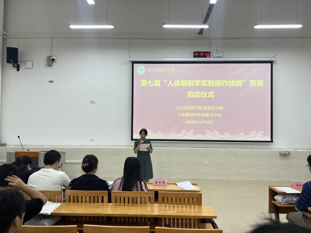 启动仪式上,黄秀峰主任发表致辞。她表示,本次竞赛对同学们来说是解剖理论知识掌握深度和实验操作技能熟练程度的双重挑战,希望同学们能够充分发挥团队协作精神、刻苦锤炼实验操作技能,在本次竞赛中取得好成绩。黄秀峰主任强调,当前我院大体标本资源较少,希望同学们珍惜每一次动手操作的机会,在操作过程中不仅要追求知识水平和操作技能的提升,更要注重医学人文精神的培养。