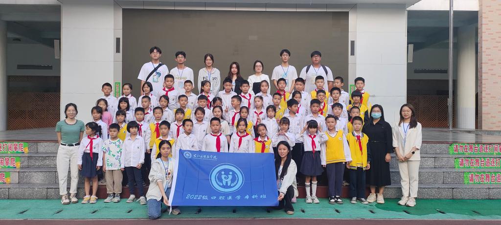 为响应党的二十大号召,助力儿童口腔宣传服务,提高儿童保护口腔的意识,科普口腔保健知识,了解儿童口腔健康状况。11月8日下午,口腔医学院学生在潘虹老师的带领下前往逸夫小学开展“点亮微笑,‘齿’为上计”儿童口腔健康知识宣讲活动。