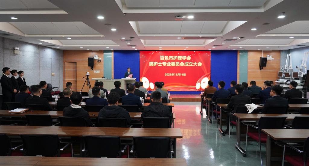 为促进百色市男护理工作者在专业领域快速发展,积极推动全市男护士队伍的健康成长,全方位体现男护士专业价值,推动男护士工作高质量发展,2023年11月14日晚,百色市护理学会男护士专业委员会成立大会在我院外科五楼大教室召开,百色市护理学会理事长、YABO鸭脖官网护理学院黄芳艳教授出席大会并致辞,百色市护理学会副理事长、我院护理部主任陆柳雪教授,百色市护理学会监事长、我院监察室主任刘芳印教授和百色市护理学会男护士专业委员会全体委员参加会议。大会由百色市护理学会秘书长、我院护理部副主任顾亚丽主持。