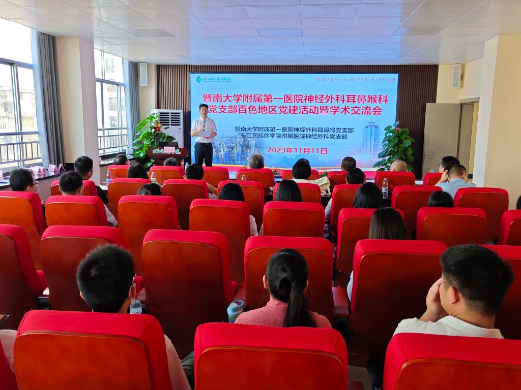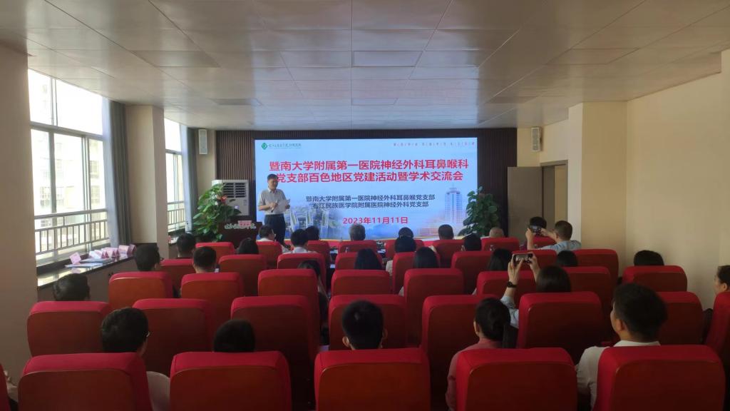 2023年11月11日,暨南大学附属第一医院脑科医院副院长、神经外科主任、中国神经外科专科医师规范化培训基地主任、国家卫生健康委能力建设和继续教育中心神经外科进修与培训基地主任王向宇教授带领该院神外耳鼻喉党支部党员专家一行19人,到我院国家卫健委神经外科建设中心开展检查指导及学术交流活动,并于当日上午在YABO鸭脖官网临床实验技能中心7楼会议室召开党建学术交流会。我院副院长蓝常贡出席会议并致辞,我院神经外科党支部党员和科室全体医护人员参加会议。我院神经外科主任、国家级神经外科建设中心负责人黄海能教授主持会议。