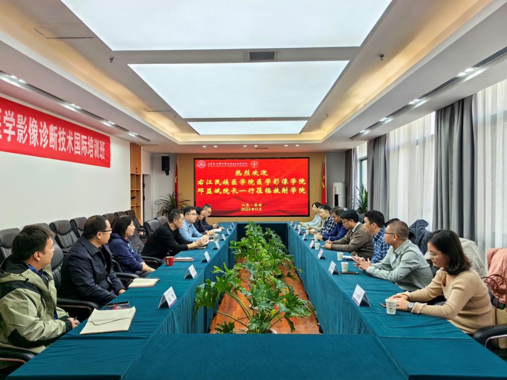 为进一步加强医学影像学院学科专业一体化建设,提高学院教学、科研水平,11月19日至21日,医学影像学院邓益斌院长带队一行8人前往山东第一医科大学放射学院开展调研学习。山东第一医科大学放射学院党委副书记赵传华、副院长鲁雯、副院长何乐民热情接见了调研组一行。