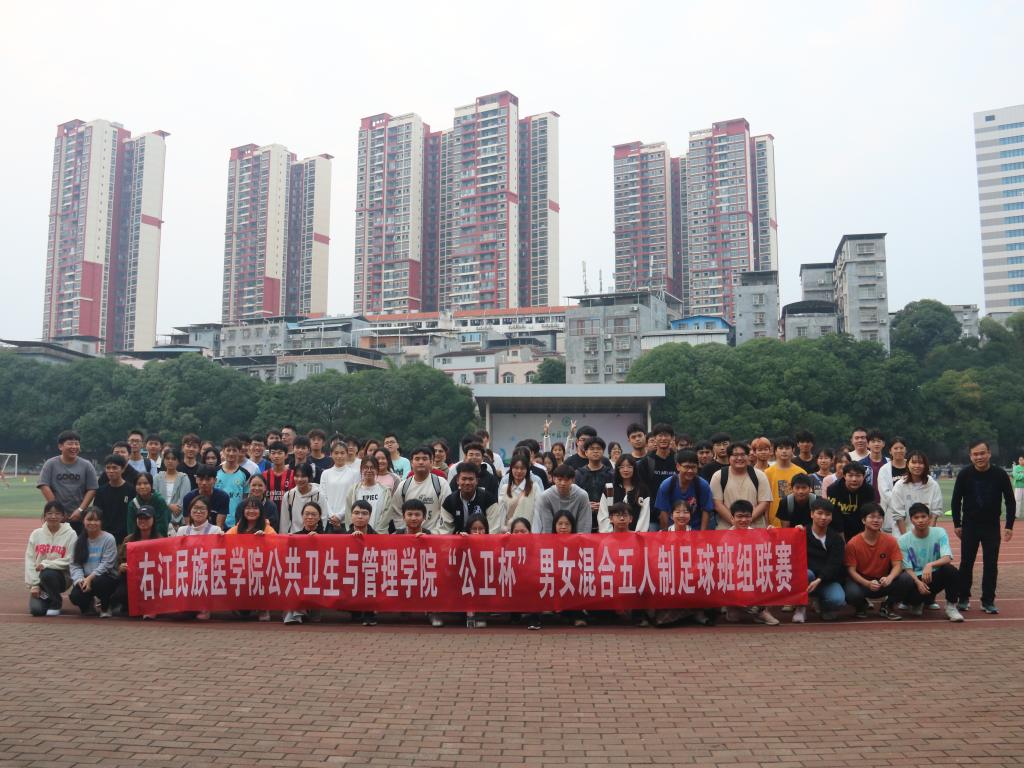 11月23日下午5:30,公共卫生与管理学院在百城校区田径场举办第一届“公卫杯”男女混合五人制足球班组联赛开幕式暨揭幕战,开幕式由分团委文体部部长刘泽华主持,公共卫生与管理学院党委书记李常应致辞,联赛球员代表2023级市场营销班莫晋沣、裁判员代表2021级预防2班韦振剑分别宣誓,公共卫生与管理学院各学生组织、各班学生代表参加本次开幕式。