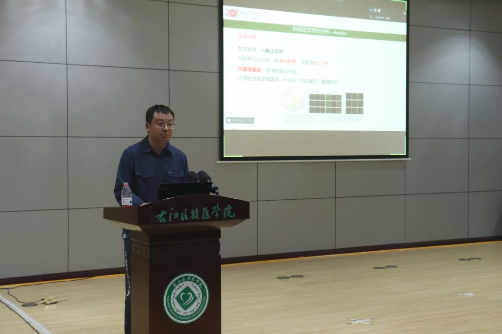 赵立升博士以“医学科研论文的选题与写作”为题,结合自身研究方向及近年来发表的文章,运用大量生动的例子从论文的选题、标题、摘要、行文规范、文献综述、文献阅读等方面与老师和同学们进行了分享与讲解。整场报告思路清晰,内容丰富,现场交流气氛热烈。
