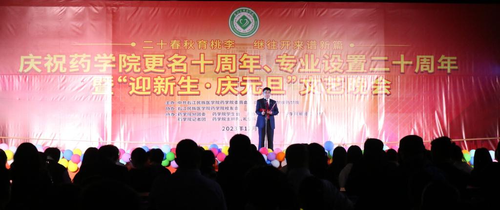 时光如水,忆往昔筚路蓝缕;岁月如歌,看今朝再谱新篇。为了展现药学院师生的先进风采,增强药学院师生的归属感、认同感及自豪感,纪念药学院更名十周年、专业设置二十周年这一个极具意义的日子,2023年12月9日晚,药学院在百东校区田径场举办庆祝药学院更名十周年、专业设置二十周年暨“迎新生·庆元旦”文艺晚会。