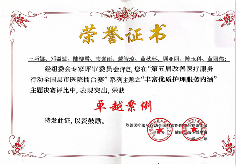 2023年12月9日—10日,第五届改善医疗服务行动全国县市医院擂台赛系列主题之“丰富优质护理服务内涵”比赛在河南省驻马店市平舆县人民医院举行。出席本次赛事的评委嘉宾有国家卫生健康委医院管理研究所区域卫生发展研究室副主任单淑娟、南丁格尔奖获得者宋静、北京航空总院护理部主任王晓莹、河南省卫生健康委医政处副处长张小燕等近60位专家。该赛事旨在进一步解决人民群众看病就医的急难愁盼问题,改善全过程就医感受,提升患者体验,保障人民群众享有公立医院高质量发展成果。自2019年以来,在国家卫生健康委医政司的指导下,五年时间共有6035个案例参与申报,覆盖32个省(自治区、直辖市)、1500家医院,其中有600多家医院全程参与到改善医疗服务擂台赛的比赛中,累计上万人到比赛现场学习交流,在业界产生了广泛的影响。